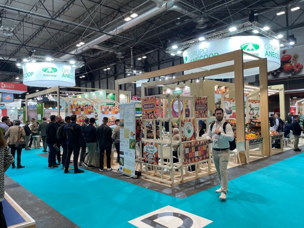 Como es habitual en esta cita internacional del sector, Anecoop participó con un stand en el que estuvieron representadas todas las filiales y delegaciones del Grupo.  En este espacio, presentó su oferta hortofrutícola, una extensa gama de cultivo 100% nacional que configura su porfolio comercial y que producen sus más de 21.000 socios productores. Su producción Bio, que comercializa junto con la empresa del Grupo especializada en frutas y hortalizas ecológicas, Solagora, dispuso de un espacio diferenciado.